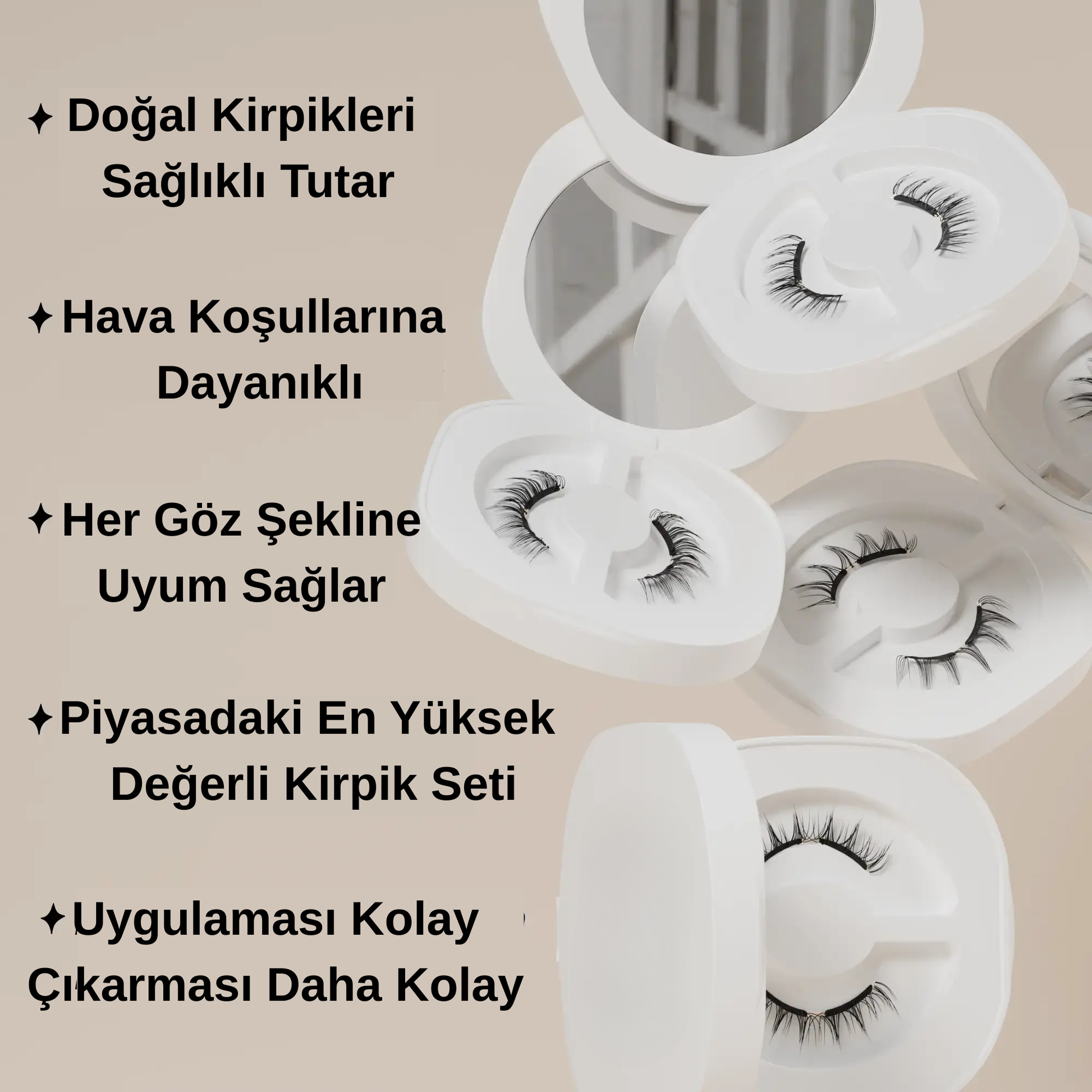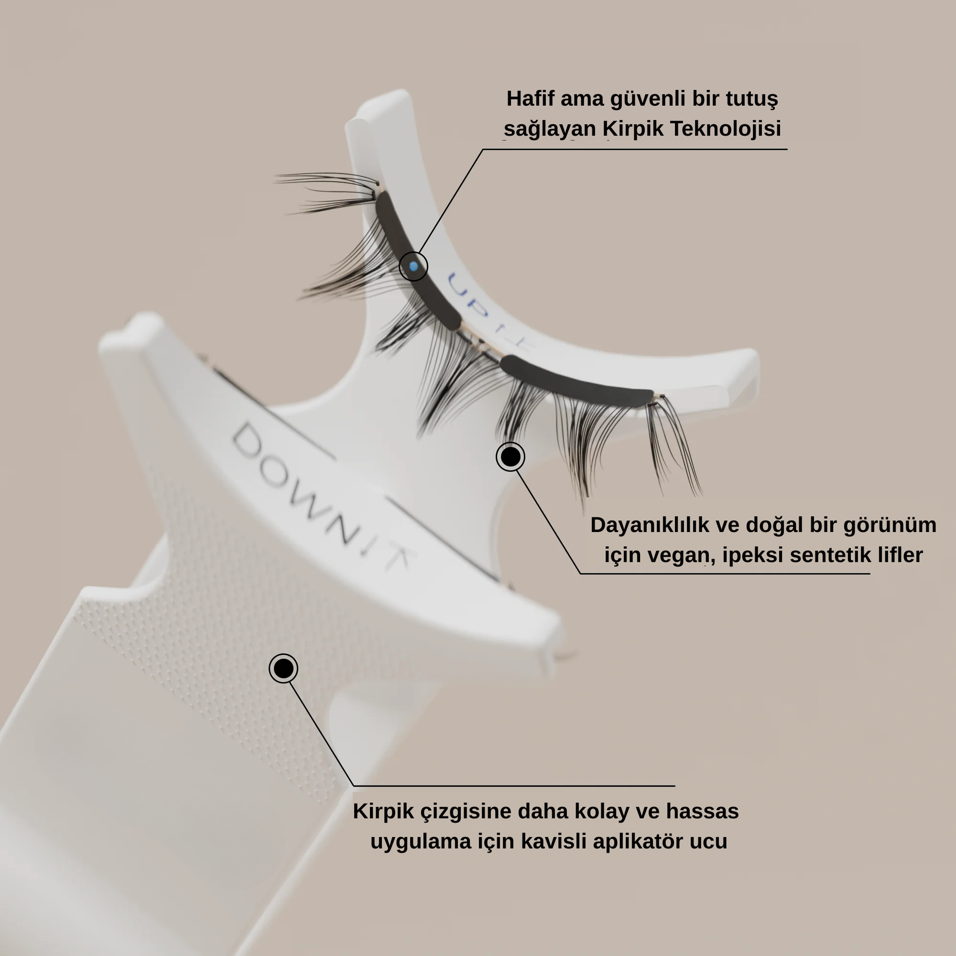 Kirpikleri çıkarmak çok kolay! Gözünüzün dış veya iç köşesinden nazikçe çekerek çıkarabilirsiniz. Yapıştırıcılı kirpiklerdeki gibi uğraş gerektirmez, 1–2 saniyede çıkar.